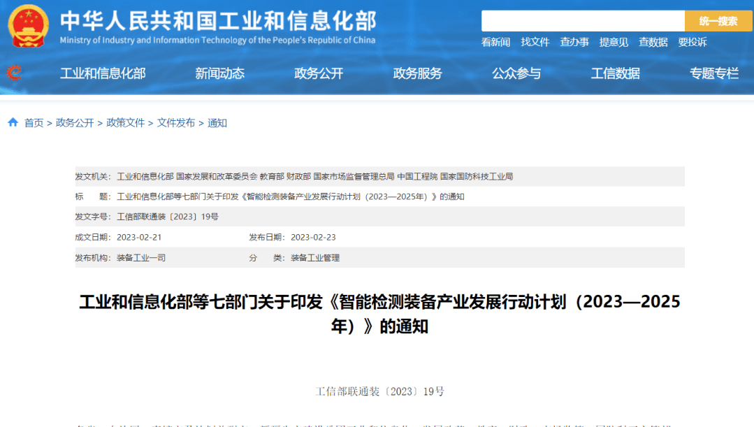 七部門聯(lián)合印發(fā)《智能檢測裝備產(chǎn)業(yè)發(fā)展行動(dòng)計(jì)劃(2023—2025年)》